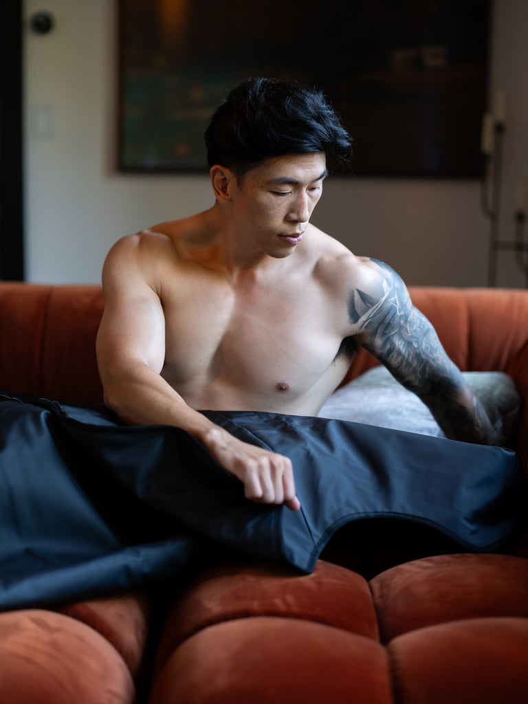 For the most comfortable experience, we recommend wearing long sleeves, long pants, and socks while in the blanket. We also suggest lining the blanket with a thick towel. This will help absorb any sweat released during your session and provide comfort while lying on top of the heat source.